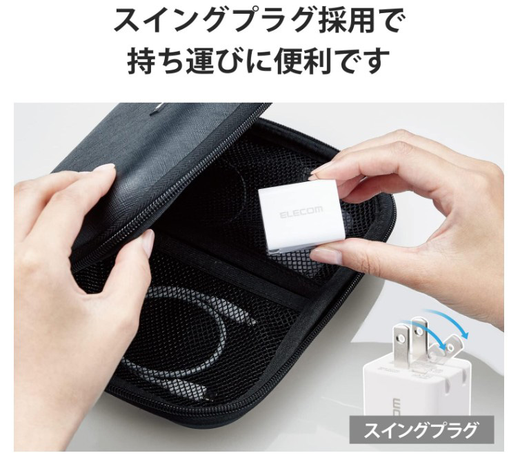 その他・機能:折りたたみ式プラグ、2ポート(USB-C/USB-A)、小型、ケーブル別売り:2台同時充電
