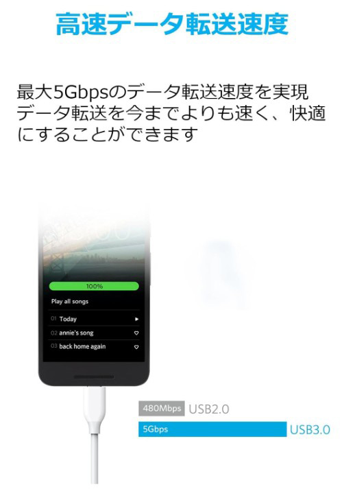 ・高速充電&同期:USB-Cポートからフルスピードでスマートフォンやタブレットに充電可能。HD映画を5Gbpsのハイスピードで転送できます(※Nexus 5X / 6Pへも充電は可能ですが、急速充電には対応しておりません)。